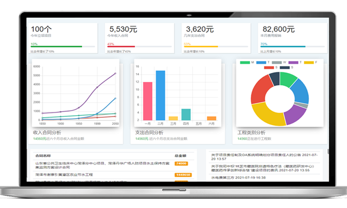 根据项目工作量自动核算人员产值,自动分析各部门年度产值。